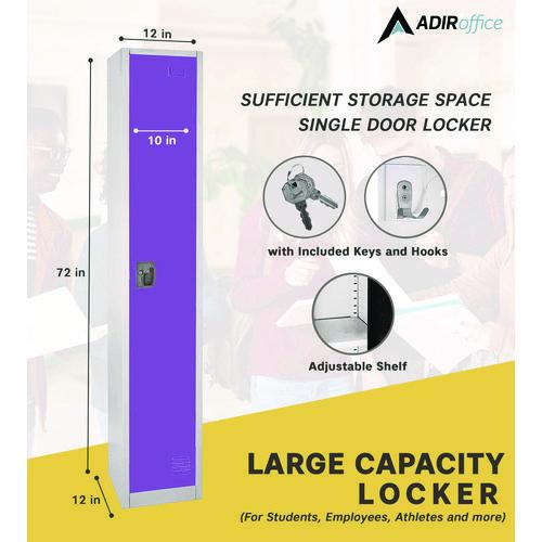 Product Details** Global Product Type Single-Tier Lockers Color(s) Purple Number of Shelves 2 Shelf Capacity (Weight) 50 lbs Drawer Configuration 0 Material(s) Steel Overall Width 12″ Overall Depth 12″ Overall Height 72″ Maximum Weight Capacity 100 lbs Tray Quantity 0 Number of Compartments 1 Door Quantity 1 Number of Drawers 0 Caster/Glide/Wheel No Series Name AdirOffice 629 Series Product Biodegradability Indicator N Product Biodegradability in Days 0 Product Compostability Indicator N Pre-Consumer Recycled Content Percent 0% Post-Consumer Recycled Content Percent 0% Total Recycled Content Percent 0% Country Of Origin CN Carton Weight 42 lbs. Carton Pack Quantity 1 EA Pack Quantity 0 UPC 840309408233 UNSPSC 56101520 Shipping Weight & Item Dimensions Weight 42 lbs. Length 73 in Height 4 in Width 14 in Warranty Manufacturer’s one-year warranty.