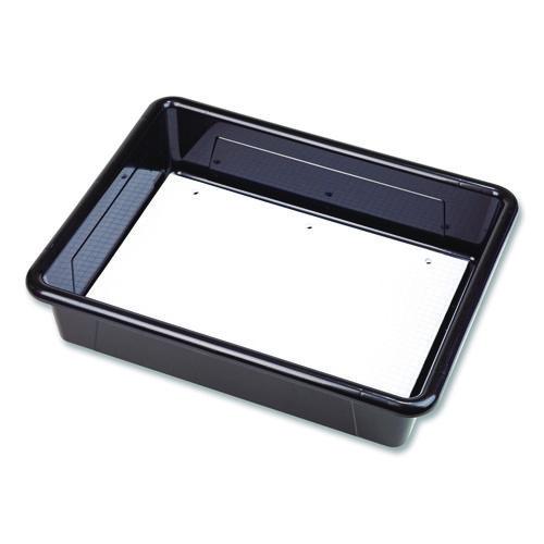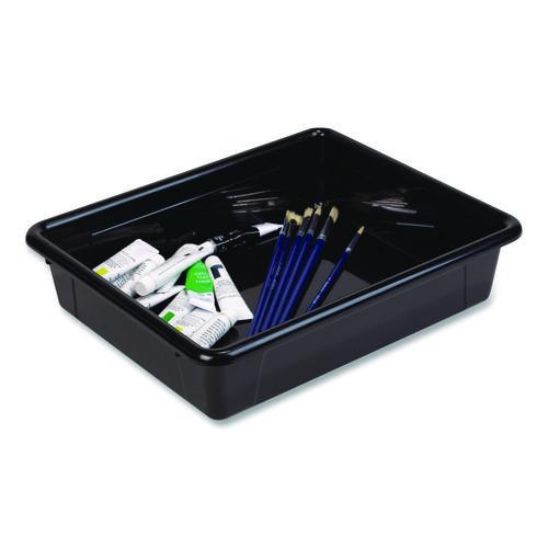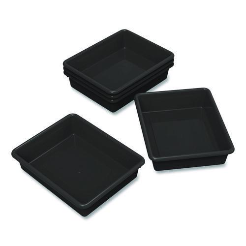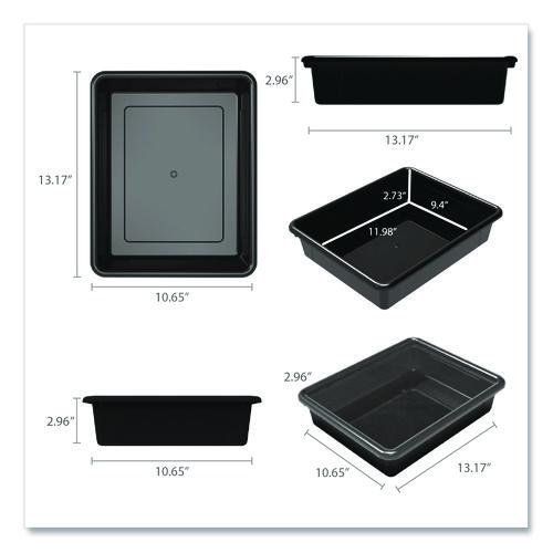 Product Details** Global Product Type Open Boxes & Bins Number of Compartments 1 Maximum Volume Range Less than 1 gal Material Family Plastic Color Family Black Stackable Yes Capacity (Volume) 102.4 oz Capacity (Weight) 10 lb Material(s) Plastic Width 10.65″ Depth 10.65″ Height 2.96″ Color(s) Black Lid Sold Separately Yes Product Biodegradability Indicator N Product Biodegradability in Days 0 Product Compostability Indicator N Pre-Consumer Recycled Content Percent 0% Post-Consumer Recycled Content Percent 0% Total Recycled Content Percent 0% Special Features Flat Tray Country Of Origin CA Carton Weight 3 lbs. Carton Pack Quantity 1 PK Pack Quantity 5 EA UPC 685442625167 UNSPSC 24112003 Shipping Weight & Item Dimensions Weight 3.1 lbs. Length 13.4 in Height 6.25 in Width 10.9 in Warranty Manufacturer’s limited 90-day warranty