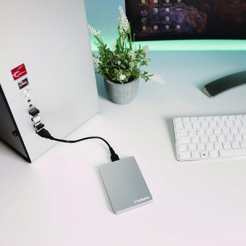 The sleek brushed aluminum 1TB Store n’ Go ALU Slim Portable Hard Drive brings a look ofsophistication to any Mac or PC and has a USB 3.2 Gen 1 connection for data transferspeeds of up to 5 Gbps. The Store n’ Go Portable Hard Drive comes pre-installed with Nerobackup software for full system backup and restore functionality schedule automaticbackups by date and time, or encrypted backup with password protection. With the high speed and high capacity of the stylish Store ‘n’ Go ALU Slim, you can store and carry your digital life with you, wherever you go.