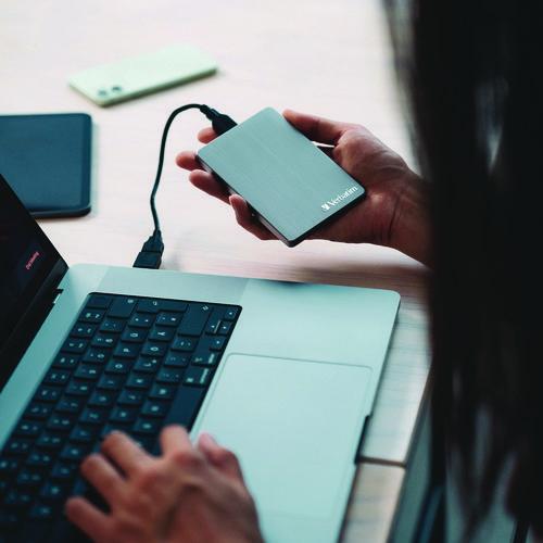 Product Details** Global Product Type External Hard Drives Drive Type Portable Hard Drive Maximum Native Data Capacity 1 TB Connector/Port/Interface USB 3.2 Gen 1 Transfer Rate 5 Gbps Operating System Compatibility Mac® OS X 10.4 and Later,Windows® XP, Vista, 7, 8, 10 Weight 0.33 oz Color(s) Space Gray Product Biodegradability Indicator N Product Biodegradability in Days 0 Product Compostability Indicator N Package Includes Green Button Energy-Saving Software,Micro-B to USB-A Cable,Multilingual Quick Start Guide,Nero Backup Software (only compatible with Windows OS),USB-A to USB-CTM Adapter,User Manual (preloaded),Verbatim Hard Drive Formatter Software Pre-Consumer Recycled Content Percent 0% Post-Consumer Recycled Content Percent 0% Total Recycled Content Percent 0% Country Of Origin TH Carton Weight 3 lbs. Carton Pack Quantity 4 EA Pack Quantity 0 UPC 023942536628 UNSPSC 43211715 Shipping Weight & Item Dimensions Weight 0.54 lbs. Length 6.42 in Height 1.18 in Width 3.78 in Warranty Manufacturer’s limited two-year warranty.