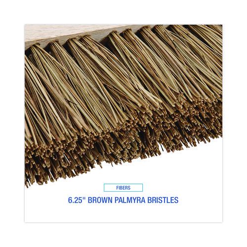 Long, coarse bristled brush head effectively pushes litter and debris with ease to clean more efficiently. Built with one tapered and one threaded handle hole that enable front-to-back orientation changes for more even wear. For use with threaded 1.13-inch diameter handles, which are sold separately. 16″ wide hardwood block brush for maximum coverage and durability.Ideal for hard, floor surfaces, indoors or outdoors.