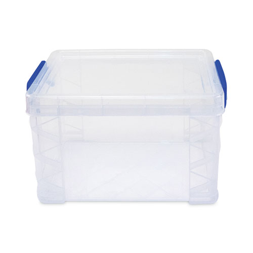 Product Details** Global Product Type Covered Boxes & Bins Number of Compartments 1 Material Family Plastic Color Family Clear Stackable Yes Material(s) Plastic Width 7.25″ Depth 10.88″ Height 6.38″ Color(s) Transparent/Blue Closure Type Latching Lift-Off Lid Product Biodegradability Indicator N Product Biodegradability in Days 0 Product Compostability Indicator N Package Includes (1) Lid Pre-Consumer Recycled Content Percent 0% Post-Consumer Recycled Content Percent 0% Total Recycled Content Percent 0% Country Of Origin US Carton Weight 6 lbs. Carton Pack Quantity 6 EA Pack Quantity 0 UPC 091141392307 UNSPSC 13111019 Shipping Weight & Item Dimensions Weight 0.751 lbs. Length 10.062 in Height 7.477 in Width 6.438 in