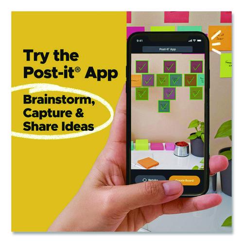 Experience the power of 2X stickiness and get the creative juices flowing with the bright, playfully dynamic colors of the Energy Boost Collection. Super Sticky Notes stick to practically everything, everywhere, and these vibrant, spirited colors can brighten your mood and your messages! Revolutionary technology ensures your notes will stick securely to most surfaces yet remove cleanly. Versatile and essential, they’re the perfect solution for lists, reminders, color-coding, labeling, brainstorming, storyboarding and even mural art. As they adhere firmly to walls, windows, doors, worksurfaces, mirrors and more, you can stick and restick them wherever they’re most likely to be noticed. To enhance your note-taking experience, download the free Post-it® App to your smartphone or tablet and instantly capture, save and share your important notes.