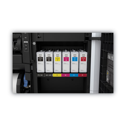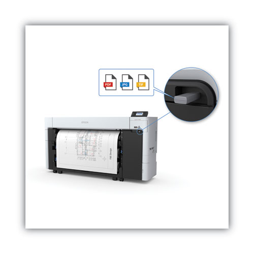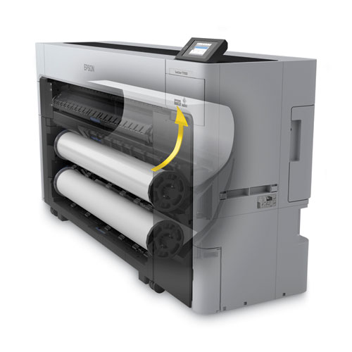 Engineered to deliver breakthrough performance, the first available 44-inch-wide SureColor T7770D features industry-leading 2.6-inch PrecisionCore® printhead technology, delivering fastest-in-class print speeds. Plus, it prints posters and point-of purchase displays at speeds up to 300 sq ft/hr and CAD and technical drawings at production-class speeds over 1,400 sq ft/hr. An innovative Adobe® Embedded Print engine with four on-board Intel Atom CPUs quickly processes complicated PDF data and accurately reproduces transparent design layers at speeds up to three times faster than previous generations. Featuring an innovative, purpose-built, reliable design with complete front operation, this innovative printer seamlessly produces crisp, detailed prints from virtually anywhere in the workspace-even when pushed against the wall. From vivid posters to crisp CAD drawings, the SureColor T7770D prints with incredible precision and stunning color using vibrant UltraChrome® XD3 Ink with a new red ink/color.With its array of convenient, customizable features, such as simple automatic roll loading and versatile media handling, including a dual roll/take up system, this workhorse printer will easily integrate into almost any production workflow to revolutionize business productivity.