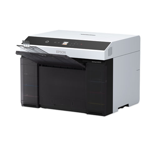 Delivers high-quality prints using Epson’s MicroPiezo® AMC™ printhead and AccuPhoto™ image processing technology, with six-color UltraChrome® D6r-S dye-based ink for vibrant water-, smudge- and fade-resistant prints. Produces production-class speeds up to 460, 4 x 6, 300, 5 x 7 and 165, 8 x 10 prints per hour. UltraChrome high-capacity 250 mL ink packs deliver wide color gamut; cartridge-free printing can help reduce waste compared to traditional cartridge systems. New front-facing 1.44 LCD panel simplifies print tasks and operation. Features new nozzle detection and alignment technology for less downtime and more reliable operation. Connect easily to printer with improved connectivity and simplified software over Wi-Fi®, Ethernet or USB using redesigned printer driver for Windows® and Mac®. Compact size with integrated output tray is well-suited for photo booths as well as portrait and event photography. Prints on a wide range of high-capacity roll and double or single-sided sheet media, including glossy, luster, matte and thick card surfaces.