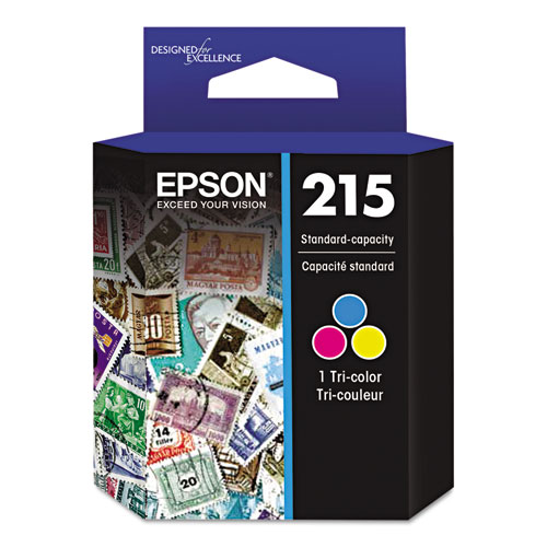 Product Details** Global Product Type Ink/Ink Cartridges OEM/Compatible OEM Supply Type Ink Device Types Inkjet Printer Color(s) Tri-Color Market Indicator (Cartridge Number) 215 Print Supply Technology DURABrite Ultra™ Remanufactured No For Use With Epson® WorkForce® WF-100 Product Biodegradability in Days 0 Pre-Consumer Recycled Content Percent 0% Post-Consumer Recycled Content Percent 0% Total Recycled Content Percent 0% Country Of Origin ID Carton Weight 4 lbs. Carton Pack Quantity 32 EA Pack Quantity 0 UPC 010343916357 UNSPSC 44103105 Shipping Weight & Item Dimensions Weight 0.075 lbs. Length 4.6 in Height 1.7 in Width 3.6 in