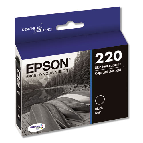 Product Details** Global Product Type Ink/Ink Cartridges OEM/Compatible OEM Supply Type Ink Device Types Inkjet Printer Color(s) Black Page-Yield 175 Market Indicator (Cartridge Number) 220 Print Supply Technology DURABrite Ultra™ Remanufactured No For Use With Epson® Expression® Home XP-320, 420, 424,WorkForce® WF-2630, 2650, 2660, 2750, 2760 Product Biodegradability Indicator N Product Biodegradability in Days 0 Product Compostability Indicator N Pre-Consumer Recycled Content Percent 0% Post-Consumer Recycled Content Percent 0% Total Recycled Content Percent 0% Country Of Origin ID Carton Weight 3 lbs. Carton Pack Quantity 32 EA Pack Quantity 0 UPC 010343915589 UNSPSC 44103105 Shipping Weight & Item Dimensions Weight 0.1 lbs. Length 4.5 in Height 0.9 in Width 4.5 in