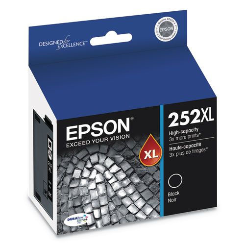 Product Details** Global Product Type Ink/Ink Cartridges OEM/Compatible OEM Supply Type Ink Yield Type High-Yield Ink Base Pigment-Based Device Types Inkjet Printer Color(s) Black Page-Yield 1,100 Market Indicator (Cartridge Number) 252XL Print Supply Technology DURABrite Ultra™ Remanufactured No For Use With Epson® WorkForce® WF-3620, WF-3640, WF-7110, WF-7210, WF-7610, WF-7620, WF-7710, WF-7720 Product Biodegradability Indicator N Product Biodegradability in Days 0 Product Compostability Indicator N Pre-Consumer Recycled Content Percent 0% Post-Consumer Recycled Content Percent 0% Total Recycled Content Percent 0% Country Of Origin ID Carton Weight 7 lbs. Carton Pack Quantity 32 EA Pack Quantity 0 UPC 010343910331 UNSPSC 44103105 Shipping Weight & Item Dimensions Weight 0.2 lbs. Length 4.9 in Height 2.5 in Width 4.5 in
