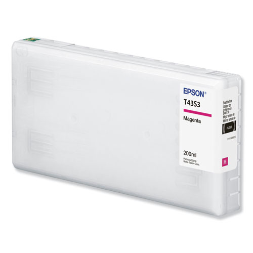 Product Details** Global Product Type Ink/Ink Cartridges OEM/Compatible OEM Supply Type Ink Ink Base Dye-Based Device Types Inkjet Printer Color(s) Magenta Market Indicator (Cartridge Number) T43S Print Supply Technology UltraChrome® D6r-S Remanufactured No Liquid Volume 200 mL For Use With Epson® SureLab D870 Product Biodegradability Indicator N Product Biodegradability in Days 0 Product Compostability Indicator N Pre-Consumer Recycled Content Percent 0% Post-Consumer Recycled Content Percent 0% Total Recycled Content Percent 0% Country Of Origin ID Carton Weight 13 lbs. Carton Pack Quantity 15 EA Pack Quantity 0 UPC 010343946712 UNSPSC 44103105 Shipping Weight & Item Dimensions Weight 0.8 lbs. Length 9.7 in Height 1.1 in Width 4.3 in
