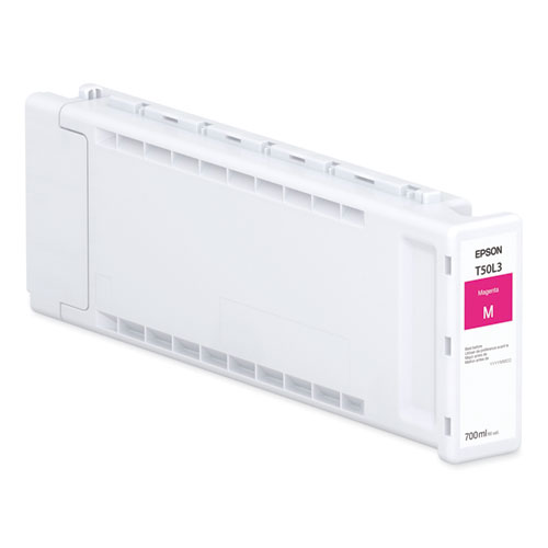 Product Details** Global Product Type Ink/Ink Cartridges OEM/Compatible OEM Supply Type Ink Device Types Wide Format Inkjet Printer Color(s) Magenta Market Indicator (Cartridge Number) T50L Remanufactured No Liquid Volume 700 mL For Use With Epson® SureColor® T7770D Product Biodegradability Indicator N Product Biodegradability in Days 0 Product Compostability Indicator N Pre-Consumer Recycled Content Percent 0% Post-Consumer Recycled Content Percent 0% Total Recycled Content Percent 0% Country Of Origin ID Carton Weight 30 lbs. Carton Pack Quantity 12 EA Pack Quantity 0 UPC 010343956148 UNSPSC 44103105 Shipping Weight & Item Dimensions Weight 2.3 lbs. Length 13.7 in Height 4.6 in Width 1.8 in