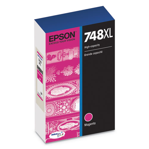 The Epson DURABrite Pro 748XL and 748XXL High-Capacity Ink Cartridges are a fast drying pigment ink that produces smudge-, fade-, and water-resistant prints. It’s compatible with select Epson WorkForce Pro printers and features a yield of 5,000 pages (XL) and 7,000 pages (XXL). Ideal for high-volume printing, this ink delivers crisp black text and bright, vivid colors for any presentation. Great for business printing, it features fast-drying pigment ink for prints that can be shared right away.