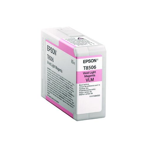 Product Details** Global Product Type Ink/Ink Cartridges OEM/Compatible OEM Supply Type Ink Yield Type High-Yield Ink Base Pigment-Based Device Types Wide Format Inkjet Printer Color(s) Vivid Light Magenta Market Indicator (Cartridge Number) T850 Print Supply Technology UltraChrome® Remanufactured No Liquid Volume 80 mL For Use With Epson® SureColor® P800 Product Biodegradability Indicator N Product Biodegradability in Days 0 Product Compostability Indicator N Pre-Consumer Recycled Content Percent 0% Post-Consumer Recycled Content Percent 0% Total Recycled Content Percent 0% Country Of Origin ID Carton Weight 11 lbs. Carton Pack Quantity 30 EA Pack Quantity 0 UPC 010343989580 UNSPSC 44103105 Shipping Weight & Item Dimensions Weight 0.35 lbs. Length 3.9 in Height 1.3 in Width 3.1 in