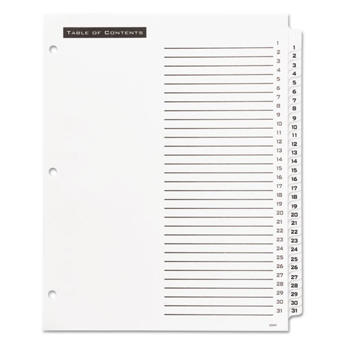 Table 'n Tabs Dividers, 31-Tab, 1 to 31, 11 x 8.5, White, White Tabs, 1 SetTable ‘n Tabs Dividers, 31-Tab, 1 to 31, 11 x 8.5, White, White Tabs, 1 Set