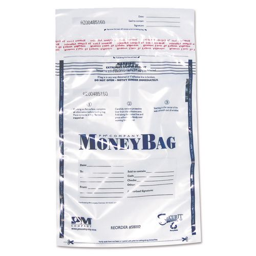 Product Details** Global Product Type Cash Deposit Bags Closure Type Adhesive Material(s) Plastic Color(s) Clear Width 9″ Height 12″ Product Biodegradability in Days 0 Compliance Standards Meets Federal Reserve Standards Pre-Consumer Recycled Content Percent 0% Post-Consumer Recycled Content Percent 0% Total Recycled Content Percent 0% Country Of Origin US Carton Weight 16 lbs. Carton Pack Quantity 5 PK Pack Quantity 100 EA UPC 089243580029 UNSPSC 44111615 Shipping Weight & Item Dimensions Weight 3 lbs. Length 11.75 in Height 15.25 in Width 1.25 in