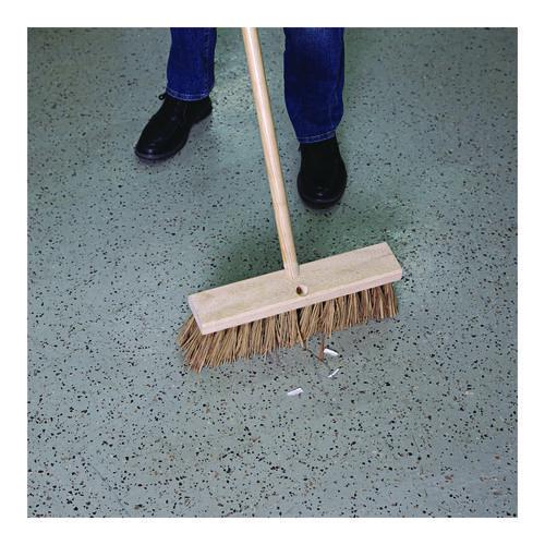 Precision-cut, tapered end broom handle. Natural colored, lacquered hardwood handle with smooth finish that resists splintering and is comfortable for extended use. Composed of solid hardwood for maximum durability and dependability for heavy-duty use applications. The rounded tip makes maneuvering and transport easy. Compatible with wood block brooms that support a tapered handle, which are sold separately.