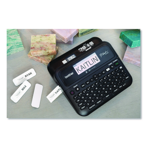 TC Tape Cartridge for P-Touch Labelers, 0.37" x 25.2 ft, Black on WhiteTC Tape Cartridge for P-Touch Labelers, 0.37″ x 25.2 ft, Black on White
