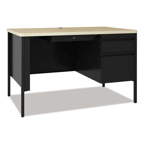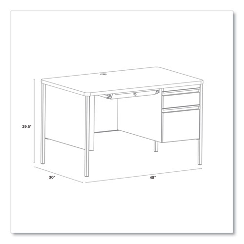 Product Details** Global Product Type Teacher & Instructor Desks Worksurface Shape Rectangular Color Family Maple Pedestal Count 1 Keyboard/Mouse Platform Indicator No CPU Holder/Platform Indicator No Number of Drawers 3 Worksurface/Base Color Maple/Black Worksurface Material Laminated Medium-Density Fiberboard (MDF) Worksurface Width 48″ Worksurface Depth 30″ Worksurface Thickness 1.13″ Edge Detail Profile Round Corners,Square Edges Base Material Steel Overall Width (Max) 48″ Overall Depth (Max) 30″ Overall Height (Max) 29.5″ Pedestal Types Hanging: 3/4-Height Drawer Type Right: Box/File,Center: Pencil Number of Shelves 0 Caster/Glide/Wheel Four Leveling Glides Book Box Indicator No Product Biodegradability Indicator N Product Biodegradability in Days 0 Product Compostability Indicator N Compliance Standards Carb Phase II Compliant,GREENGUARD Certified,GREENGUARD Gold Certified,Meets or Exceeds ANSI/BIFMA Standards Pre-Consumer Recycled Content Percent 14% Post-Consumer Recycled Content Percent 16% Total Recycled Content Percent 30% Special Features One Right-Hand Pedestal with Box and File Drawers Country Of Origin MX Carton Weight 163 lbs. Carton Pack Quantity 1 EA Pack Quantity 0 UPC 029404243448 UNSPSC 56101703 Shipping Weight & Item Dimensions Weight 163 lbs. Length 32.5 in Height 22.75 in Width 51 in Warranty Manufacturer’s limited lifetime warranty.