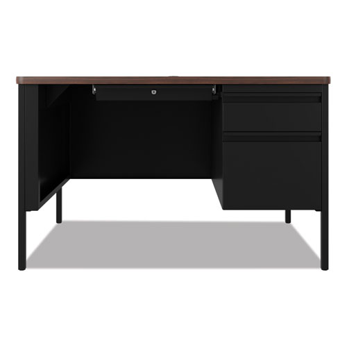 Product Details** Global Product Type Teacher & Instructor Desks Worksurface Shape Rectangular Color Family Walnut Pedestal Count 1 Keyboard/Mouse Platform Indicator No CPU Holder/Platform Indicator No Number of Drawers 3 Worksurface/Base Color Walnut/Black Worksurface Material Laminated Medium-Density Fiberboard (MDF) Worksurface Width 48″ Worksurface Depth 30″ Worksurface Thickness 1.23″ Edge Detail Profile Round Corners,Square Edges Base Material Steel Overall Width (Max) 48″ Overall Depth (Max) 30″ Overall Height (Max) 29.5″ Pedestal Types Hanging: 3/4-Height Drawer Type Right: Box/File,Center: Pencil Number of Shelves 0 Caster/Glide/Wheel Four Leveling Glides Book Box Indicator No Product Biodegradability Indicator N Product Biodegradability in Days 0 Product Compostability Indicator N Compliance Standards Carb Phase II Compliant,GREENGUARD Certified,GREENGUARD Gold Certified,Meets or Exceeds ANSI/BIFMA Standards Pre-Consumer Recycled Content Percent 14% Post-Consumer Recycled Content Percent 16% Total Recycled Content Percent 30% Special Features One Right-Hand Pedestal with Box and File Drawers Country Of Origin MX Carton Weight 101 lbs. Carton Pack Quantity 1 EA Pack Quantity 0 UPC 029404226526 UNSPSC 56121510 Shipping Weight & Item Dimensions Weight 101 lbs. Length 30 in Height 29.5 in Width 48 in Warranty Manufacturer’s limited lifetime warranty.