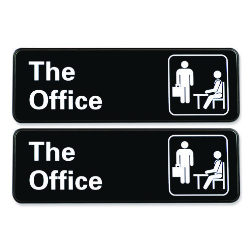 Spice up your workplace with this Excello Global Products TV show inspired The Office signage. The text is written on a plastic plate in bold letters against a reflective background for maximum visibility from a distance. With its simple-to-use application, this sign will help direct and keep everyone in the right place.