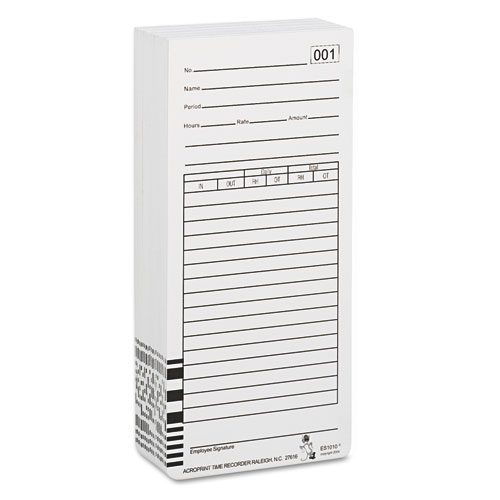 Time Clock Cards for Acroprint ES1000, Two Sides, 3.5 x 7, 100/Pack