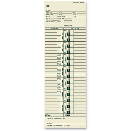 Product Details** Global Product Type Compatible Time Clock Cards Size 3.5 x 10.5 Time Period Weekly Printing Sides One Side Card Quantity 500 OEM Card Number 10-100312,1950-9301,K14-36981D Clock/Recorder Compatibility Acroprint® 125R, 150R,Amano 1000, 10000,Lathem® Time 2100, 4000,Simplex 2500, JCG, JCP, KCF, KCG Product Biodegradability in Days 0 Pre-Consumer Recycled Content Percent 0% Post-Consumer Recycled Content Percent 0% Total Recycled Content Percent 0% Special Features Manila Stock Printed Green on Front—With employee-verification signature line. Country Of Origin MX Carton Weight 27 lbs. Carton Pack Quantity 2000 EA Pack Quantity 0 UPC 025932125515 UNSPSC 44103205 Shipping Weight & Item Dimensions Weight 6.292 lbs. Length 11.1 in Height 3.9 in Width 6.4 in