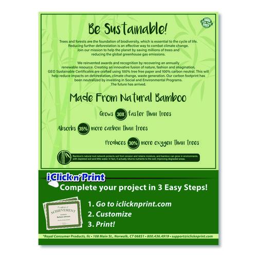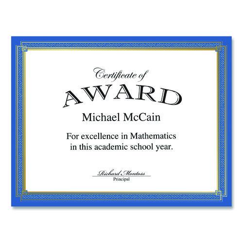 Product Details** Global Product Type Printable Certificates Shape Rectangular Color Family White Paper Basis Weight (lb) 65 lb Bond Theme Elegant Color(s) White Border Color(s) Blue/Gold Width 8.5″ Height 11″ For Use With Geographics® Certificate/Document Cover: Black, Black Tree Free, Metallic Blue, Navy Blue, Navy Blue Tree Free Product Biodegradability Indicator N Product Biodegradability in Days 0 Product Compostability Indicator N Pre-Consumer Recycled Content Percent 100% Post-Consumer Recycled Content Percent 0% Total Recycled Content Percent 100% Country Of Origin CN Carton Weight 2 lbs. Carton Pack Quantity 10 PK Pack Quantity 15 EA UPC 071064499499 UNSPSC 49101705 Shipping Weight & Item Dimensions Weight 1 lbs. Length 0.4 in Height 11.25 in Width 8.75 in