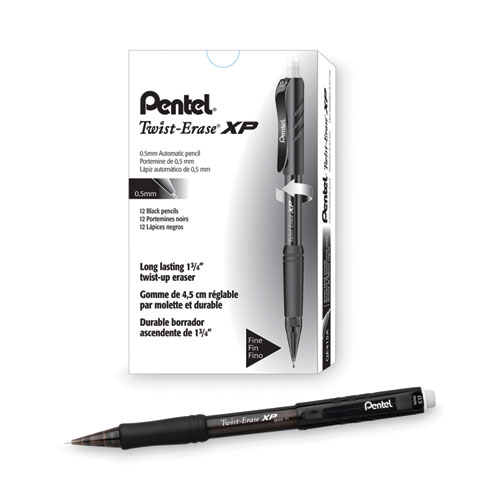 Product Details** Global Product Type Mechanical Pencils Retractable Yes Eraser (Yes/No) Yes Color Family Black Numeric Graphite Scale #2 HB Graphite Scale HB Refillable Yes Graphite Color(s) Black Pencil Barrel Color(s) Black Pencil Barrel Material Plastic Pencil Grip Type Latex-Free Rubber Graphite Diameter 0.5 mm Pocket Clip Indicator Yes Mechanical Pencil Advance Type Twist-Advance Mechanical Pencil Sleeve Type Sliding Sleeve Product Biodegradability Indicator N Product Biodegradability in Days 0 Product Compostability Indicator N Pre-Consumer Recycled Content Percent 0% Post-Consumer Recycled Content Percent 0% Total Recycled Content Percent 0% Country Of Origin MX Carton Weight 21 lbs. Carton Pack Quantity 48 DZ Pack Quantity 0 UPC 072512227800 UNSPSC 44121705 Shipping Weight & Item Dimensions Weight 0.294 lbs. Length 5.63 in Height 1 in Width 3.38 in Warranty Manufacturer’s limited lifetime warranty.