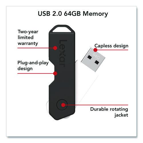 The Lexar JumpDrive TwistTurn2 flash drive has a simple plug-and-play design that allows you to quickly and easily store files, so wherever you go, your information goes with you. It also works across platforms, giving you flexibility and ease of use. This stylish and high-capacity drive sports a capless design with a durable hinged jacket that rotates to easily access a USB port or protect your files. PC and MAC compatible.
