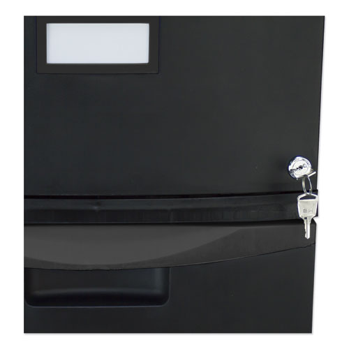 Product Details** Global Product Type Vertical File Cabinets Number of Drawers 2 Drawer Configuration File Anti-Tip Mechanism Indicator No Color Family Black Pedestal Sub-Type Indicator No Caster Indicator Yes Color(s) Black Overall Width 14.75″ Overall Depth 18.25″ Overall Height 26″ Base Material Polypropylene Top Material Polypropylene Top Thickness 0.25″ Caster Details Two 1.5″ Locking Swivel Casters,Two 1.5″ Non-Locking Swivel Casters Glide/Feet Indicator No Document Size Accommodation Legal,Letter Drawer Width-File Drawer 12″ Drawer Depth-File Drawer 16.25″ Drawer Height-File Drawer 9.5″ Product Biodegradability in Days 0 Pre-Consumer Recycled Content Percent 0% Post-Consumer Recycled Content Percent 25% Total Recycled Content Percent 25% Country Of Origin CA Carton Weight 20 lbs. Carton Pack Quantity 1 EA Pack Quantity 0 UPC 685442613126 UNSPSC 44111515 Shipping Weight & Item Dimensions Weight 20 lbs. Length 26.5 in Height 15.5 in Width 18.5 in Warranty Manufacturer’s limited 90-day warranty.