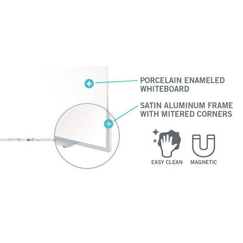 Product Details** Global Product Type Dry Erase Boards – Wall-Mount Board Surface Type(s) Dry Erase Magnetic Board Surface Yes Surface Use Rating Heavy/Frequent Use Surface Material Porcelain,Steel Surface Color White Dedicated Projection Screen No Flipchart Mounting System No Supports Custom Surface Formatting No Frame Material Aluminum Frame Color/Finish Satin Board Width 120.75″ Board Depth 0.38″ Board Height 48.5″ Preformatted Board Surface No Mounting Details L-Hangers (Included) Weight (Fully Assembled) 70 lb Product Biodegradability Indicator N Product Biodegradability in Days 0 Product Compostability Indicator N Package Includes Detachable Accessory Tray,Joiner Strip,L-Hanger Wall-Mount Hardware Pre-Consumer Recycled Content Percent 0% Post-Consumer Recycled Content Percent 0% Total Recycled Content Percent 0% Country Of Origin US Carton Weight 88 lbs. Carton Pack Quantity 1 EA Pack Quantity 0 UPC 014935399276 UNSPSC 44111905 Shipping Weight & Item Dimensions Weight 88 lbs. Length 67.25 in Height 5 in Width 57 in Warranty Manufacturer’s 50-year warranty.