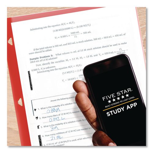 Keep yourself organized with the Five Star Customizable Folder. Durable to last all year, this folder has two horizontal pockets and a clearview front cover to add a custom cover sheet. Insert Five Star Filler Paper into the clear front cover to scan, study and organize your notes with the Five Star App. Create instant flashcards and sync your notes to Google Drive to access them anywhere from any device. Pockets and reinforced spine keep 8.5″ x 11″ papers in place. Three-hole punched to fit in your favorite Five Star binder. Durable customizable cover protects your contents from damage.