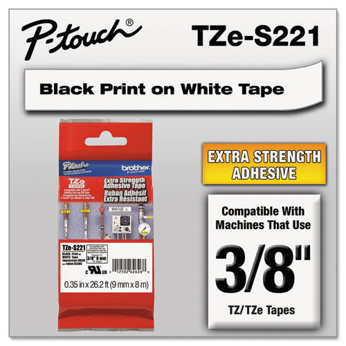 TZe Extra-Strength Adhesive Laminated Labeling Tape, 0.35" x 26.2 ft, Black on WhiteTZe Extra-Strength Adhesive Laminated Labeling Tape, 0.35″ x 26.2 ft, Black on White