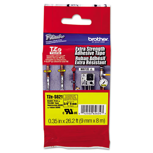 TZe Extra-Strength Adhesive Laminated Labeling Tape, 0.35" x 26.2 ft, Black on YellowTZe Extra-Strength Adhesive Laminated Labeling Tape, 0.35″ x 26.2 ft, Black on Yellow