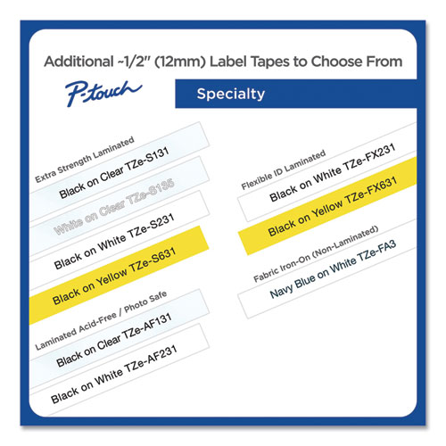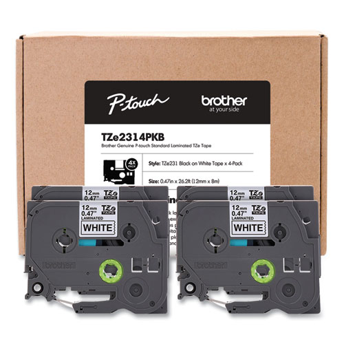 TZe Series Standard Adhesive Laminated Labeling Tape, 0.5", Black on White, 4/PackTZe Series Standard Adhesive Laminated Labeling Tape, 0.5″, Black on White, 4/Pack