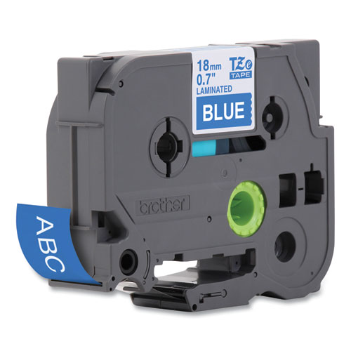 TZe Standard Adhesive Laminated Labeling Tape, 0.7" x 26.2 ft, White on BlueTZe Standard Adhesive Laminated Labeling Tape, 0.7″ x 26.2 ft, White on Blue