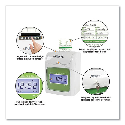 • Use the included uPunch™ cloud software to enter, manage, and run reports on time card data from any Internet-enabled device.