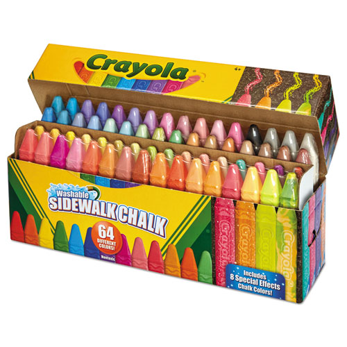 Get inspired with the largest collection of Crayola washable sidewalk chalk in one big box! With so many colors to choose from, you will be bursting with new sidewalk chalk art ideas. Plus, you never have to worry about how to remove sidewalk chalk, water or rain will do the trick! The Ultimate Washable Chalk Collection includes 56 regular chalk sticks and eight special effects sticks two tie dye, two neon glitter, two neon and two regular glitter varieties. Create colorful masterpieces on driveways, sidewalks, and beyond with this washable and classic toy for kids that makes sunny days even brighter.