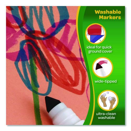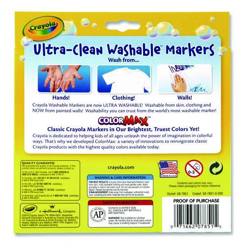 Keep color where it belongs with Crayola Ultra-Clean Washable Markers, the perfect choice for worry-free creativity. Featuring vibrant Color Max Ink technology, these markers deliver bold, long-lasting color without bleeding through the page, ensuring clean and beautiful results every time. Designed with parents and teachers in mind, the ultra-washable formula easily rinses off skin, walls, and most washable clothing, making cleanup a breeze. Ideal for classrooms, art projects, and home use, these markers provide bright, vivid colors that inspire creativity while keeping messes under control. Let kids explore their artistic side confidently with these reliable, easy-to-clean markers.
