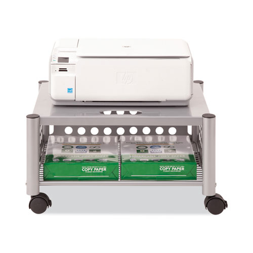 Product Details** Global Product Type Office/Machine Carts Overall Material Type Metal Color Family Gray Caster/Wheel Indicator Yes Number of Shelves 2 Number of Drawers 0 Bin Quantity 0 Material(s) Metal Wire,Steel Color(s) Matte Gray Overall Width 21.5″ Overall Depth 17.88″ Height (Max) 11.5″ Maximum Weight Capacity 90 lb Number of Wheels 4 Wheel Type (2) Locking Swivel,(2) Non-Locking Swivel Caster/Wheel Features Hooded Twin-Wheel Handle Quantity 0 Shelf Type(s) Fixed Door Quantity 0 Compartment Handle(s) 0 Lock No Power Management Indicator No Compact Storage Indicator No Product Biodegradability Indicator N Product Biodegradability in Days 0 Product Compostability Indicator N Pre-Consumer Recycled Content Percent 0% Post-Consumer Recycled Content Percent 0% Total Recycled Content Percent 0% Country Of Origin TW Carton Weight 15 lbs. Carton Pack Quantity 1 EA Pack Quantity 0 UPC 015433520056 UNSPSC 56101501 Shipping Weight & Item Dimensions Weight 14.3 lbs. Length 22.875 in Height 3 in Width 18.75 in Warranty Manufacturer’s limited 90-day warranty.