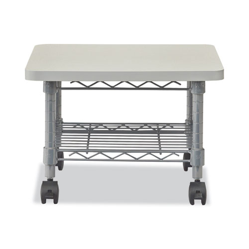 Maximize efficiency and keep your workspace organized with this versatile and compact printer stand, designed to accommodate most printers and fax machines with its spacious 19″w x 16″d surface. The sturdy steel wire shelf beneath provides convenient storage for extra paper, ink or office supplies, ensuring everything you need is within reach. Designed to fit neatly under most work surfaces, this stand helps save valuable floor space while keeping your office clutter-free. Built for durability and long-lasting use, the powder-coated steel frame resists scratches and wear, making it a reliable addition to any office or home workspace. For effortless mobility, the stand moves smoothly on four easy-glide casters, with two locking wheels to keep it securely in place when needed. Quick and easy to assemble with no tools required, this practical and space-saving printer stand is the perfect solution for a more organized and efficient office. Upgrade your workspace today!