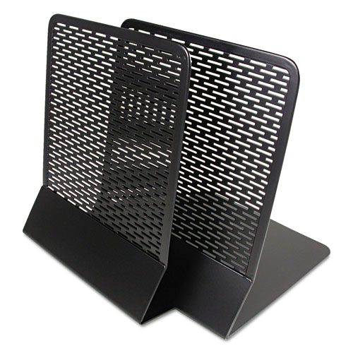 Urban Collection Punched Metal Bookends, Nonskid Base, 5.5 x 6.5 x 6.5, Perforated Steel, Black, Pair