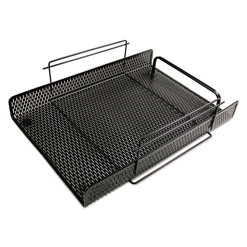 Strong, professional grade punched metal with decorative urban style slotted pattern. High quality satin finish complements any décor. Features protective feet to prevent surface wear and scratches on the desktop surface. Reinforced rounded edges provide durability and attractive detailing. Stackable, front-loading letter tray designed for easy access to materials.