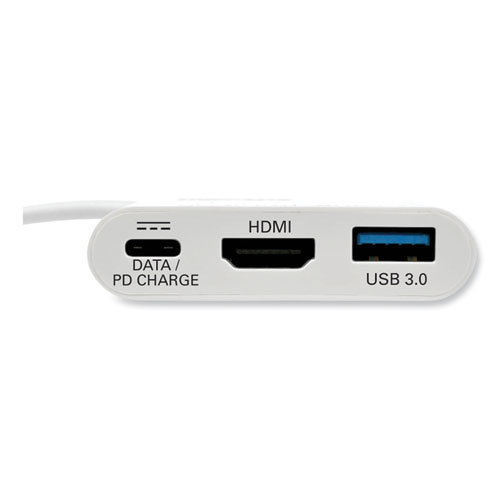 Expands the potential of your tablet, laptop, Chromebook, MacBook, smartphone or PC’s USB-C or Thunderbolt 3 port. It’s ideal for transmitting video to a large display and powering and charging a PD Charging-compliant mobile device—all at the same time. With a source device that also supports USB DisplayPort Alternate Mode, you can extend video from your primary display to another, duplicate the same video on both displays, or change the second display to your primary. Requires no software, drivers or external power. Connect the reversible USB-C plug to your source device’s USB-C or Thunderbolt 3 port. The fumble-free USB-C plug connects in either direction to ensure fast, easy connection every time. The USB-C Power Delivery (PD) port provides power and charging to the PD Charging-compliant device (such as a MacBook or Chromebook) it is connected to. Connect the device’s AC wall charger to the USB-C PD port, which supports power input up to 20V/3A (60W).