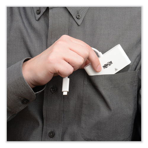 Expands the potential of your tablet, laptop, Chromebook, MacBook, smartphone or PC’s USB-C or Thunderbolt 3 port. It’s ideal for transmitting video to a large display and powering and charging a PD Charging-compliant mobile device—all at the same time. With a source device that also supports USB DisplayPort Alternate Mode, you can extend video from your primary display to another, duplicate the same video on both displays, or change the second display to your primary. Requires no software, drivers or external power. Connect the reversible USB-C plug to your source device’s USB-C or Thunderbolt 3 port. The fumble-free USB-C plug connects in either direction to ensure fast, easy connection every time. The USB-C Power Delivery (PD) port provides power and charging to the PD Charging-compliant device (such as a MacBook or Chromebook) it is connected to. Connect the device’s AC wall charger to the USB-C PD port, which supports power input up to 20V/3A (60W).