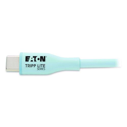 Compatible with any device with a USB-C or Thunderbolt 3 port, including a MacBook Pro, iPad, iMac, Chromebook or Windows laptop. It allows you to connect your notebook computer to a docking station, your Apple or Android device to a wall charger or power bank, or an external hard drive to a PC or tablet, to name just a few valuable uses for the cable. Very flexible for convenient on-the-go connections, this ultra-soft silicone-layered jacket avoids nasty tangles in your backpack or laptop bag and feels nice to the touch. Plus, it bends easily for connecting to devices in tight spaces or around obstacles. The Power Delivery cable provides power output up to 20 V 3 A (60 W), which is sufficient for fast charging, syncing and powering most smartphones and other mobile devices. It also supports USB 2.0 data transfer rates up to 480 Mbps. The USB-C to USB-C cable is backward compatible with previous USB generations, allowing you to use it with older equipment. The molded connectors and jacket are constructed using an antibacterial material that is effective in inhibiting Escherichia coli (E. coli) and Staphylococcus aureus (staph). This added protection makes this Safe-It™ cable an ideal solution for medical facilities, schools, businesses, restaurants/kitchens and anywhere else that needs extra protection against bacteria. The USB cable has a light blue jacket, which is easy to identify quickly in a crowded docking station or USB hub and helps prevent the cable from becoming accidentally disconnected.