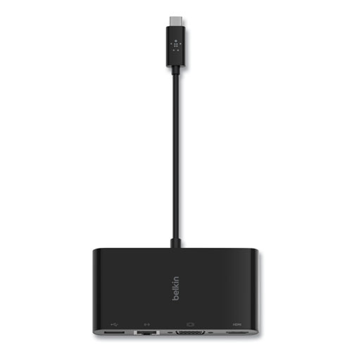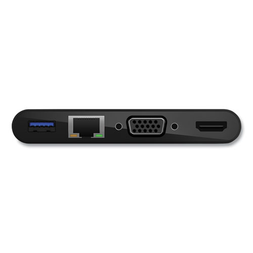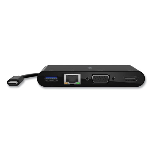 Simplify your multimedia and connect everything you need through one compact adapter. Compatible with devices that have a video-enabled USB-C® port, it’s the perfect tool for sharing your laptop or tablet screen with a crowd. The adapter supports Gigabit Ethernet, USB-A 3.0, VGA, and 4K HDMI, making it ideal for meetings, classrooms, and on-the-go presentations. The simple plug-and-play technology is compatible with Mac and Windows laptops and other USB-C devices.