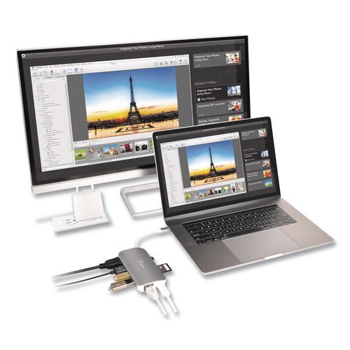 Transfer data at up to 5 Gbps with this multiport adapter. The HDMI output supports 4K resolution, and the microSD slot offers external storage. This j5create® USB type-C multiport adapter features a Gigabit Ethernet port for prompt network connectivity.