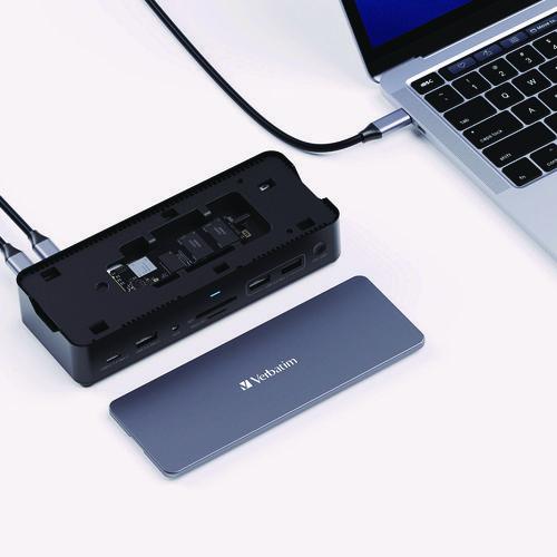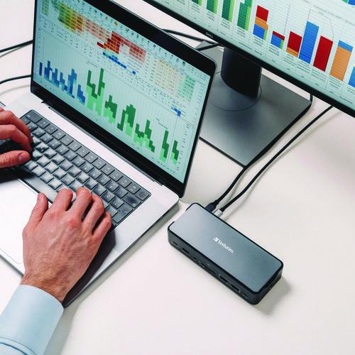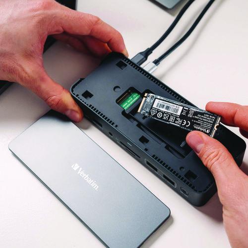 Rapid, uninterrupted file transfers are expected as this docking station utilizes 3.2 Gen 2 technologies and comes equipped with a RJ45 port that delivers a high-speed wired network connection. Our dock also has SD and microSD card reader slots to read and transfer files directly. An audio jack ensures you are able to connect your speakers and headsets for a simply dynamic workspace.