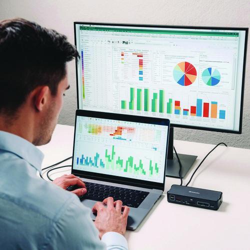 Rapid, uninterrupted file transfers are expected as this docking station utilizes 3.2 Gen 2 technologies and comes equipped with a gigabit Ethernet for stable, wireless connection. Our dock also has SD and microSD card reader slots to read and transfer files directly. An audio jack ensures you are able to connect your speakers and headsets for a simply dynamic workspace.