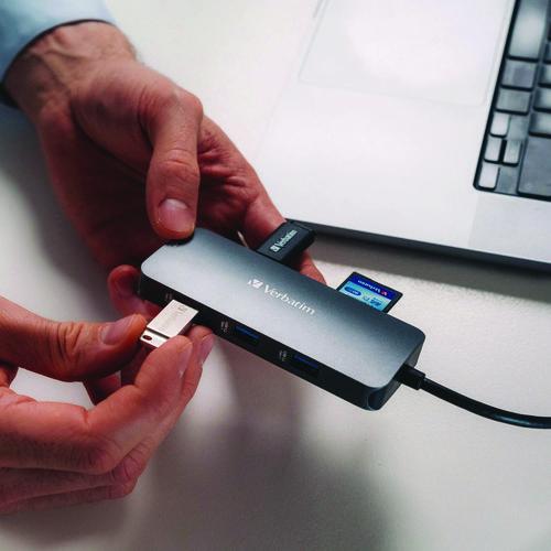 Enhanced connectivity is at your fingertips, converting a single USB-C port into nine versatile ports, including a USB 3.2 port for swift data transfer and a 4K HDMI port that provides crystal clear image and displays. If you need a card reader, this hub includes both card reader slots for SD and microSD memory cards. Our USB-C Pro Multiport Hub is your go-to solution for seamless and efficient multitasking.This nine-port hub is a connectivity powerhouse for streamlined productivity, including different generations of both USB-C and USB-A for maximum device compatibility.